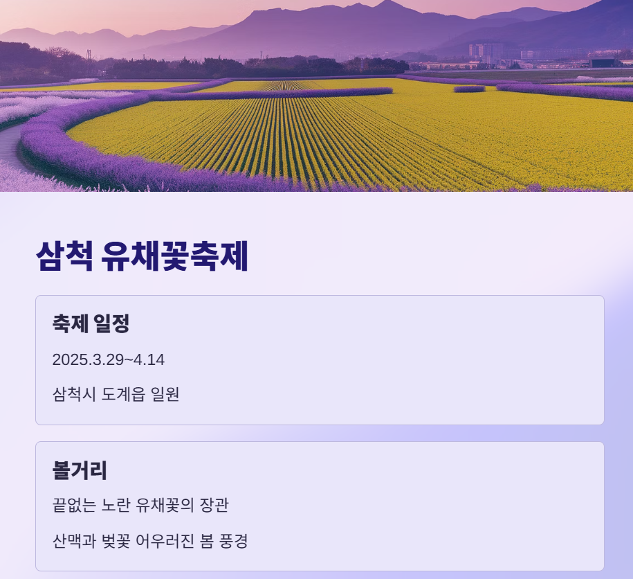 | 삼척 유채꽃축제 | 2025년 3월 29일 ~ 4월 14일 |
