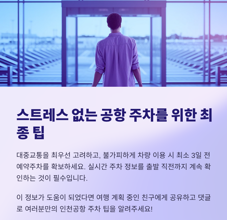 인천공항 주차장 이용은 충분한 사전 계획과 최신 정보를 활용하면 큰 스트레스를 줄일 수 있습니다.