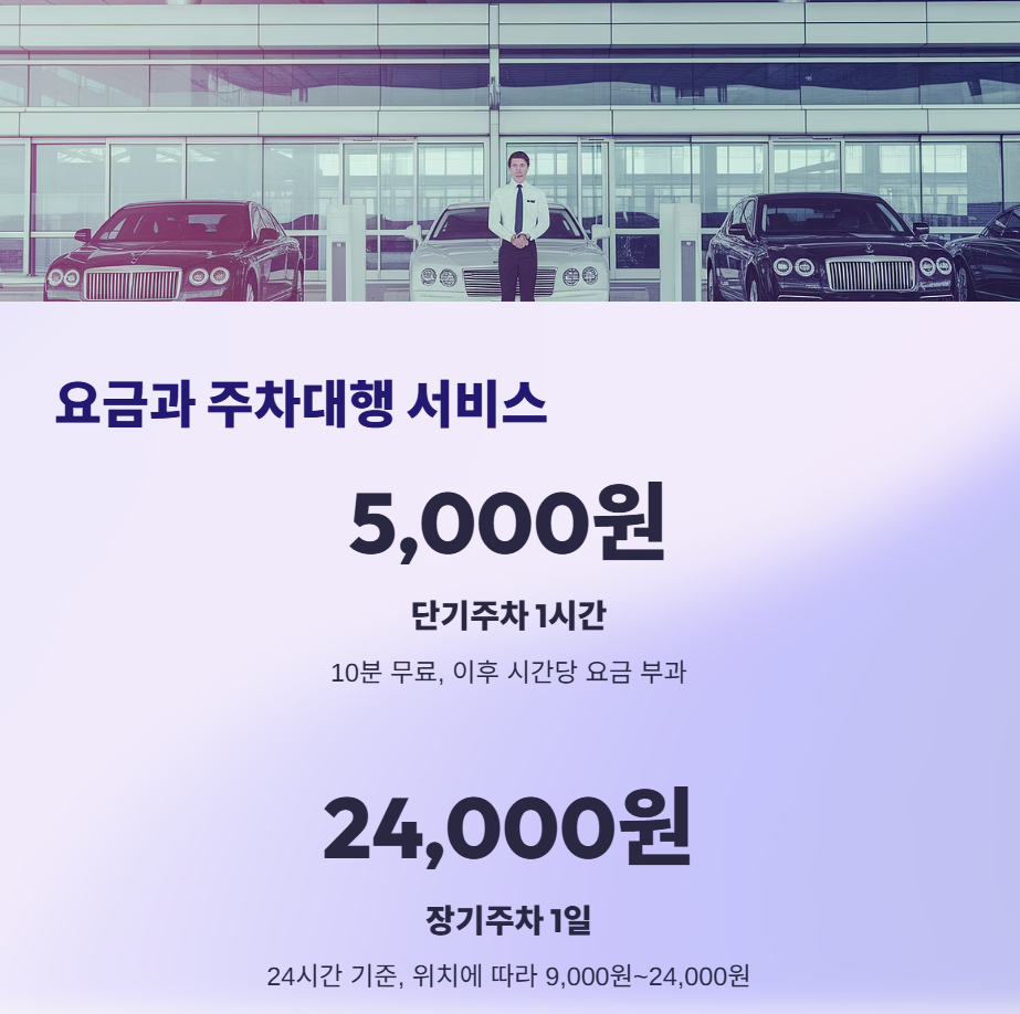| 구분 | 단기주차장 | 장기주차장 | 주차대행 |