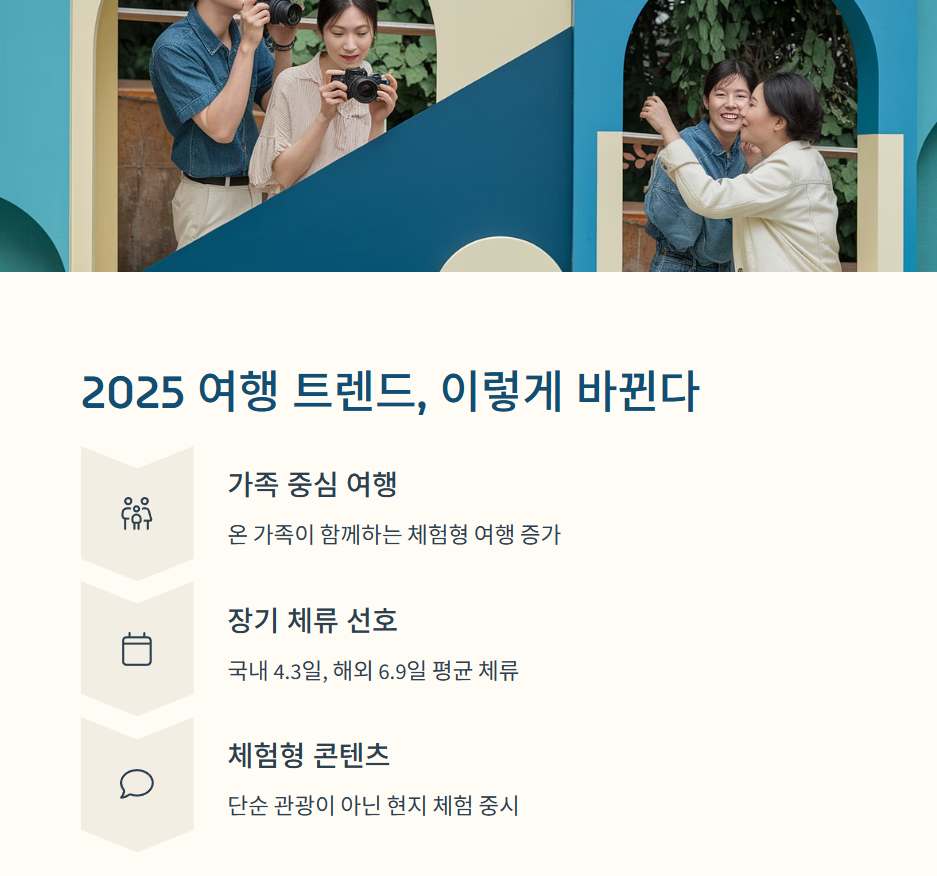 2025년 여행 트렌드는 가족 중심과 짧은 일정 중심의 패턴을 보여줍니다.