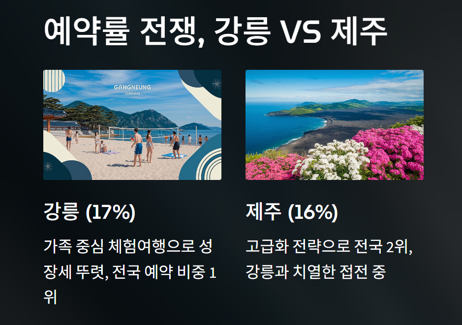 이번 콘텐츠에서는 강릉과 제주를 중심으로 최신 예약률 데이터를 비교합니다.