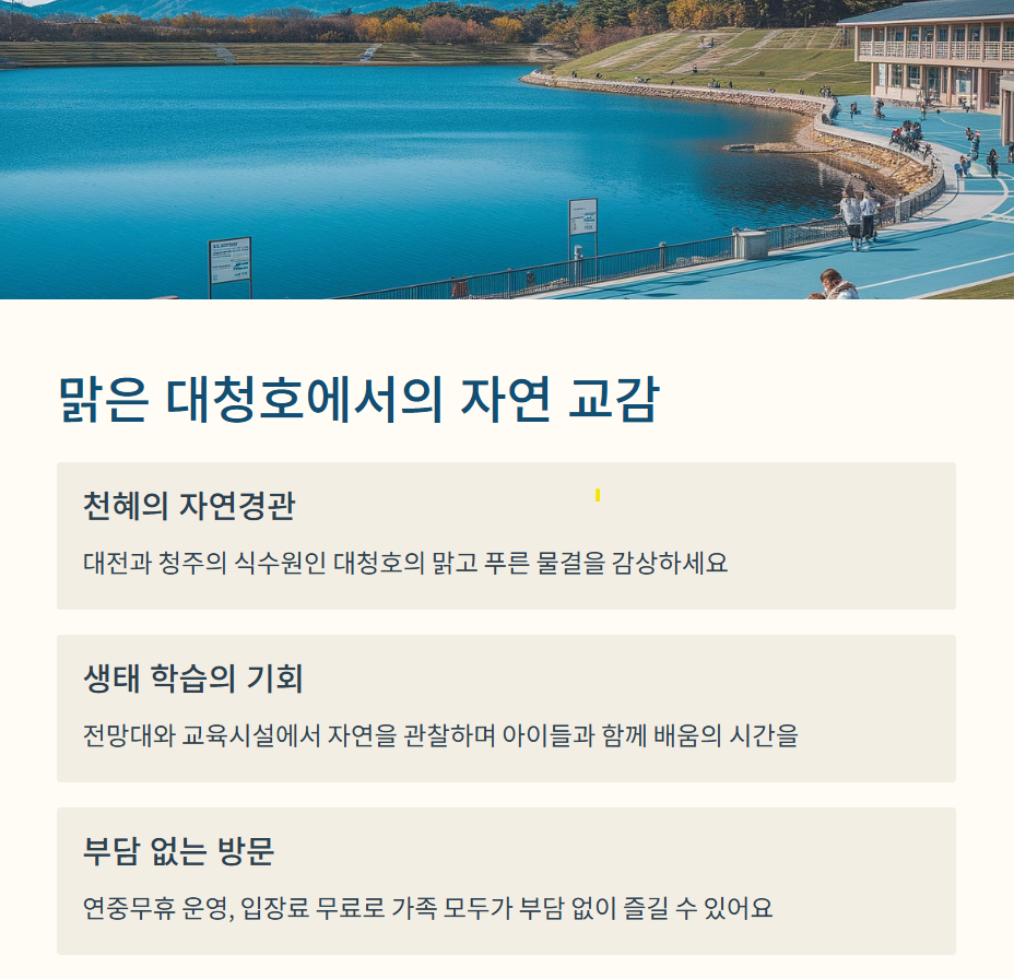 대전 인공호수부터 실내 여행지까지, 가족과 가기 좋은 여행 코스 🏞️🏢