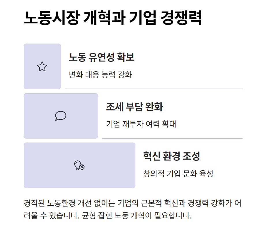 노동 개혁은 기업 경쟁력 강화의 핵심 요소 중 하나입니다.