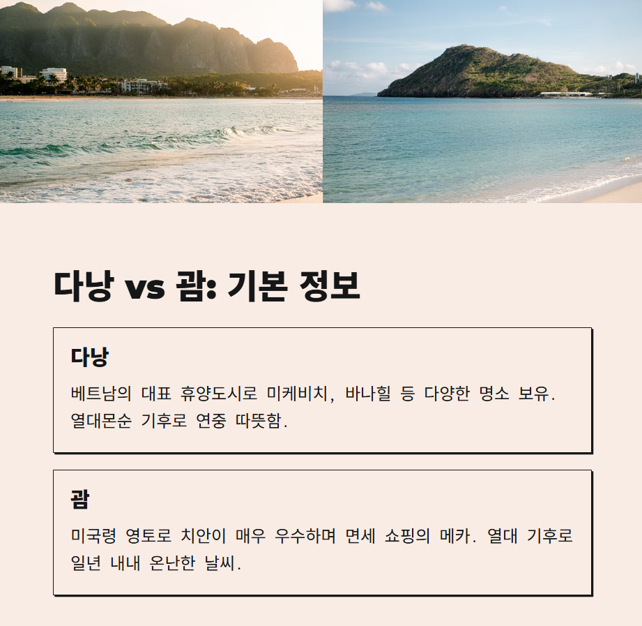 활동적인 일정이면 다낭, 느긋한 힐링이면 괌!"