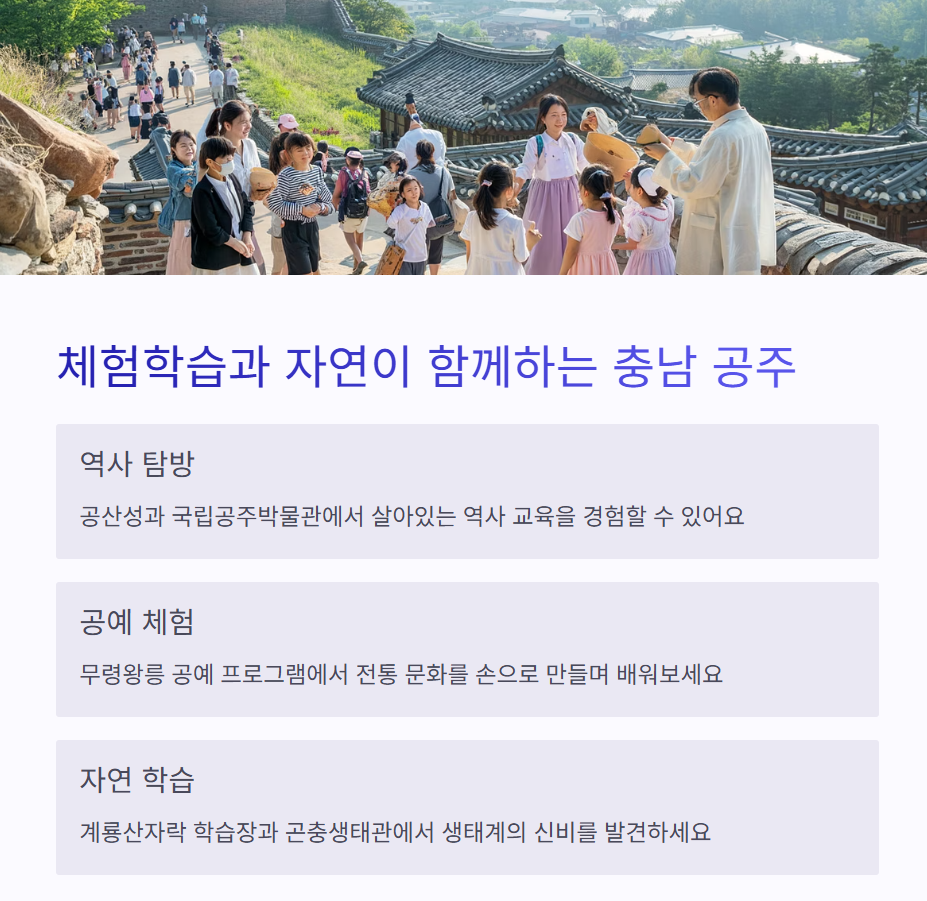 "공주 여행은 아이들에게 새로운 눈을 열어주는 교육형 여행입니다." 🎓