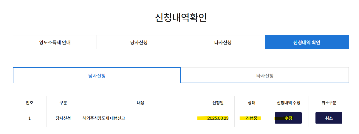 - MTS 또는 홈페이지 접속 → ‘양도세 대행신청’ 메뉴 선택