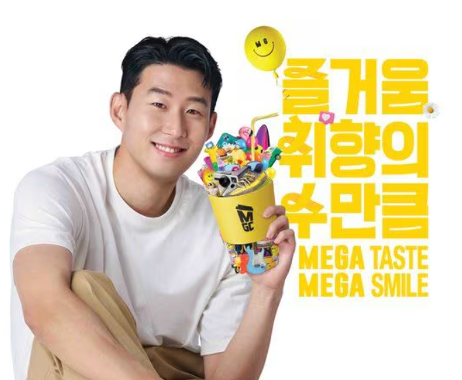 and the best part of Mega coffee is that it is a sponser of Son Heung-min who is soccer player.