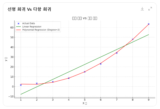 - 📌 예시: 온도와 판매량이 포물선 형태로 관계가 있을 때는 유용하지만, 너무 많은 차수를 사용하면 실제 관계를 왜곡할 수 있음