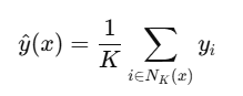 새로운 데이터 xx에 대해, 가장 가까운 KK개의 샘플의 평균으로 예측: