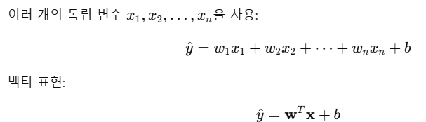 - 집값 예측: 면적, 방 개수, 위치 등 다양한 요인 고려